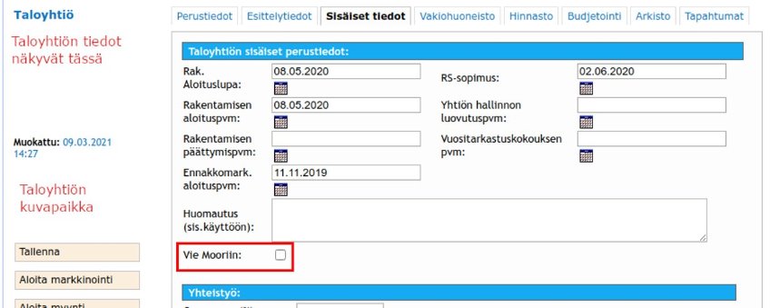 - Lisää PDX:ssä taloyhtiön sisäisissä tiedoissa “Siirrä järjestelmään”