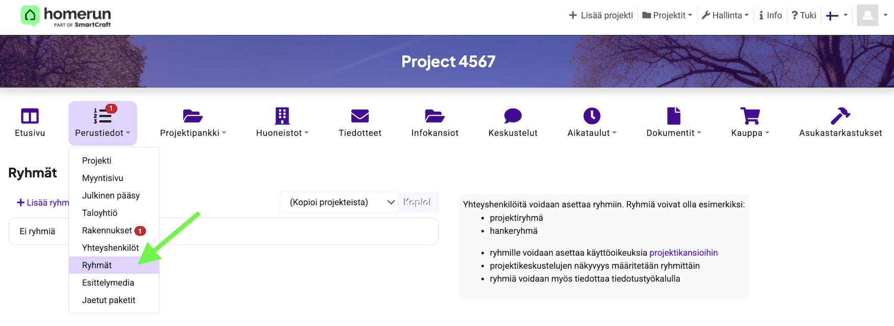 - Tarvittaessa kopioi ryhmärakenne toisesta projektista.