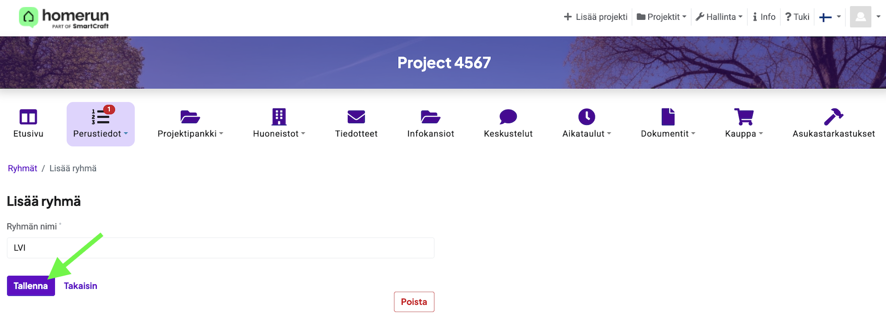 - Uuden ryhmän lisäämiseksi paina "Lisää ryhmä"