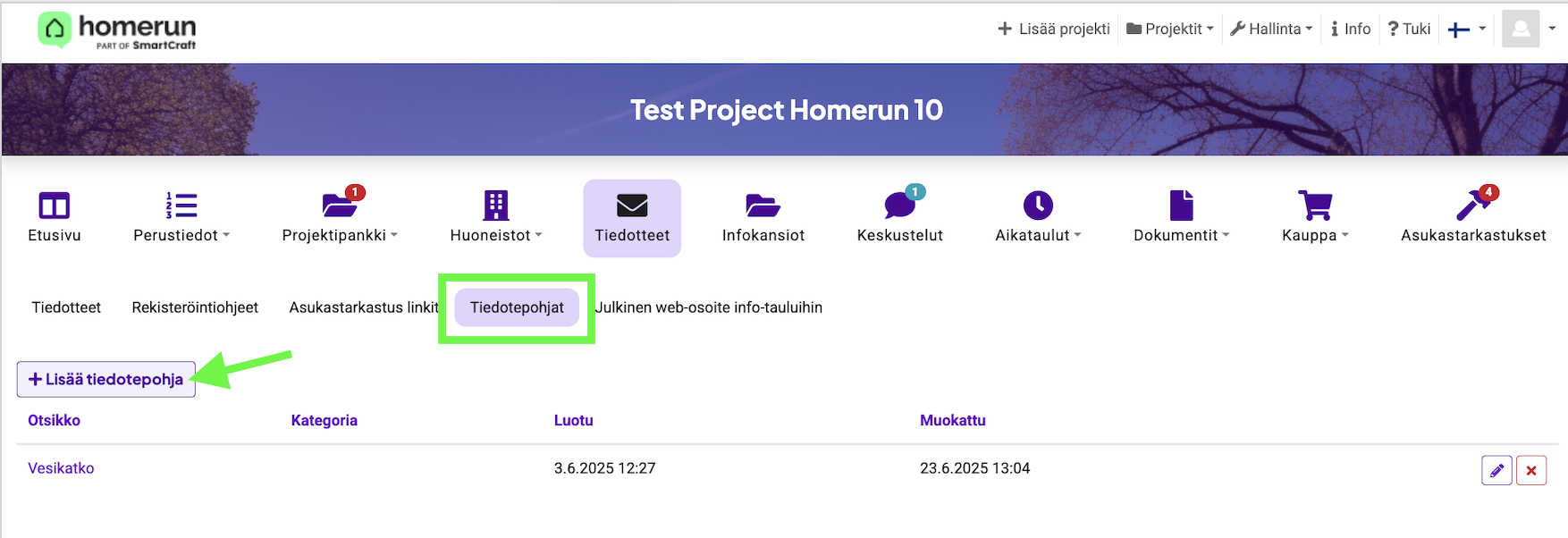 Voit luoda kategoriat tiedotepohjille, jotta niiden löytäminen myöhemmin on helpompaa ja nopeampaa. Luokittelu auttaa järjestämään pohjat esimerkiksi aiheen, projektin tai kohderyhmän mukaan.