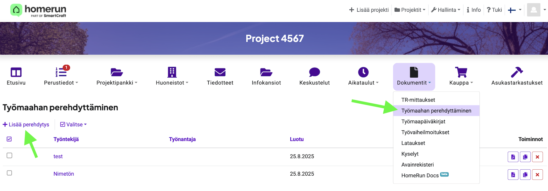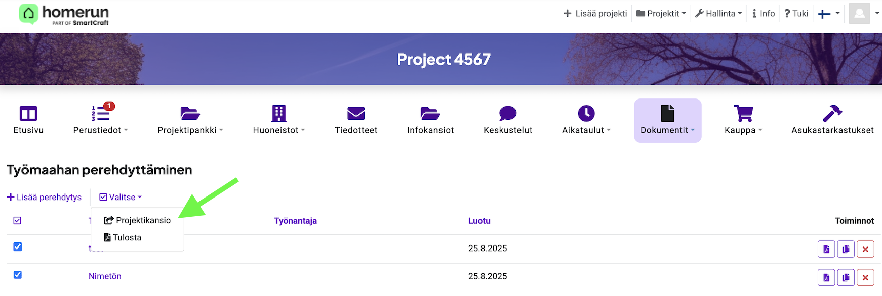 Voit viedä kaikki perehdytysdokumentit kerralla projektikansioon:
