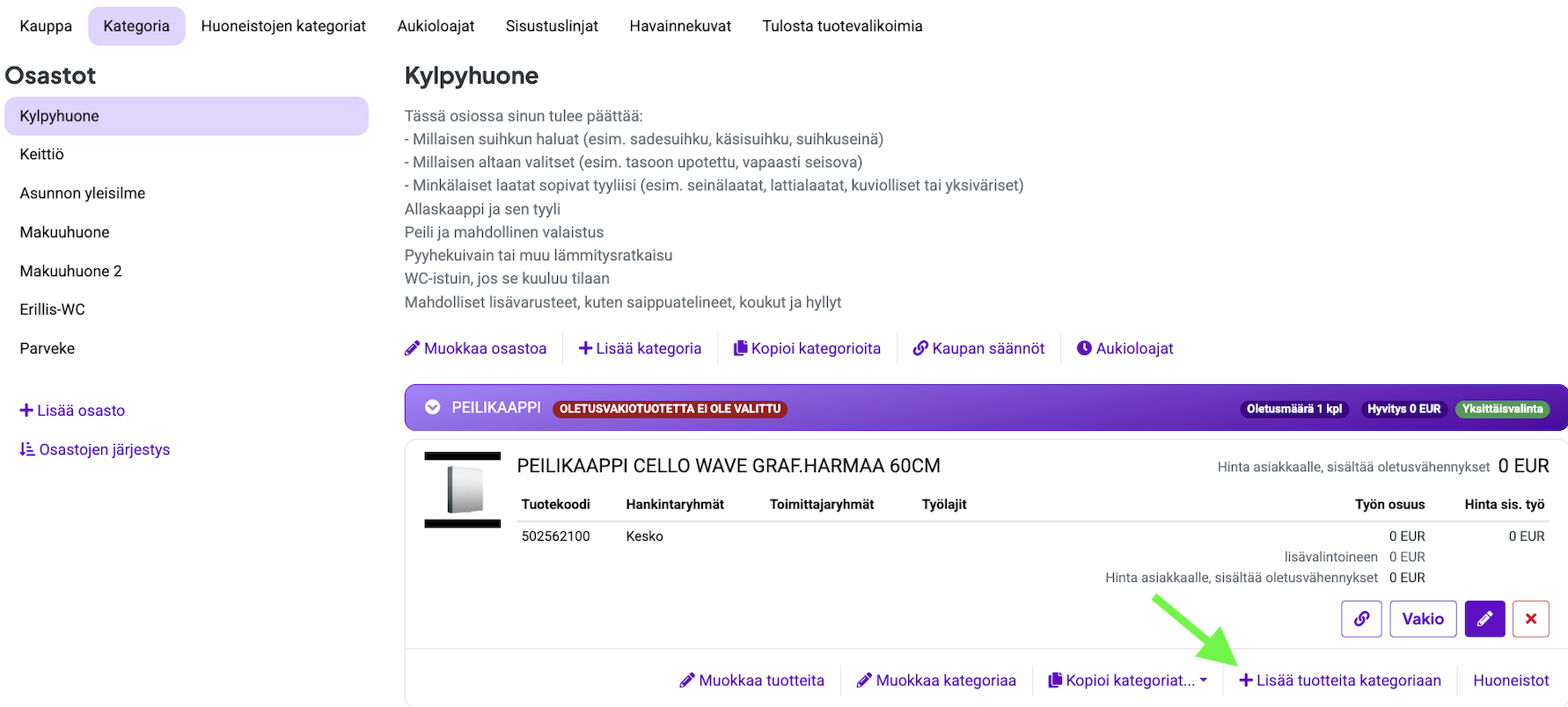 Tuotteiden lisääminen kategoriaan