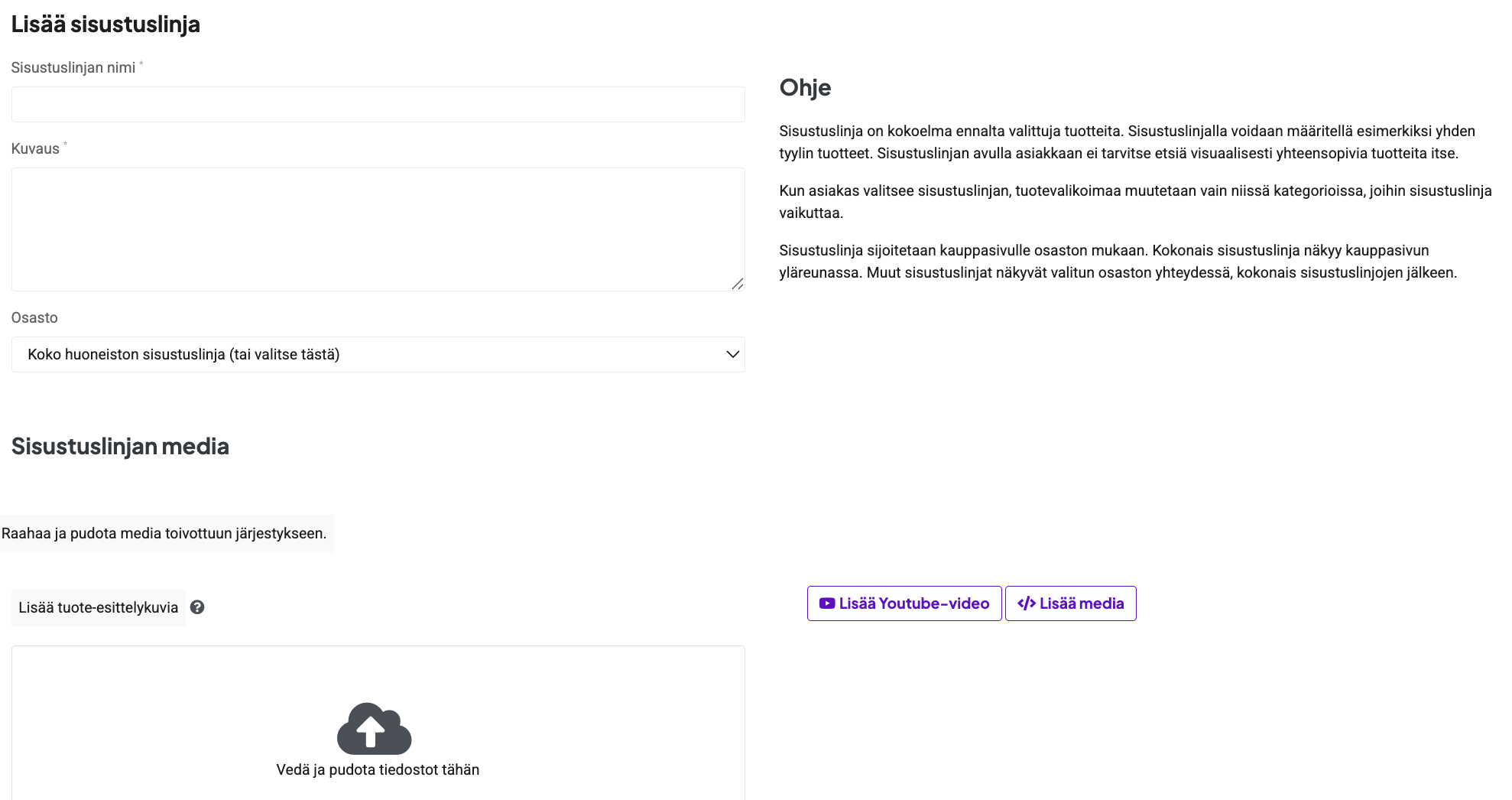 - Kirjoita sisustuslinjan nimi ja kuvaus, jotka näkyvät kaupassa asiakkaalle.