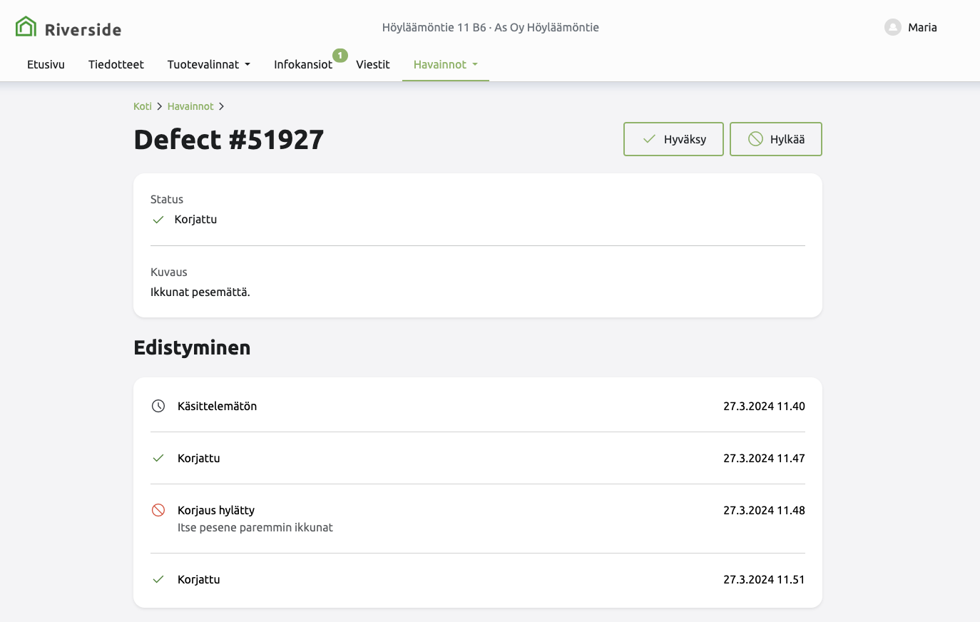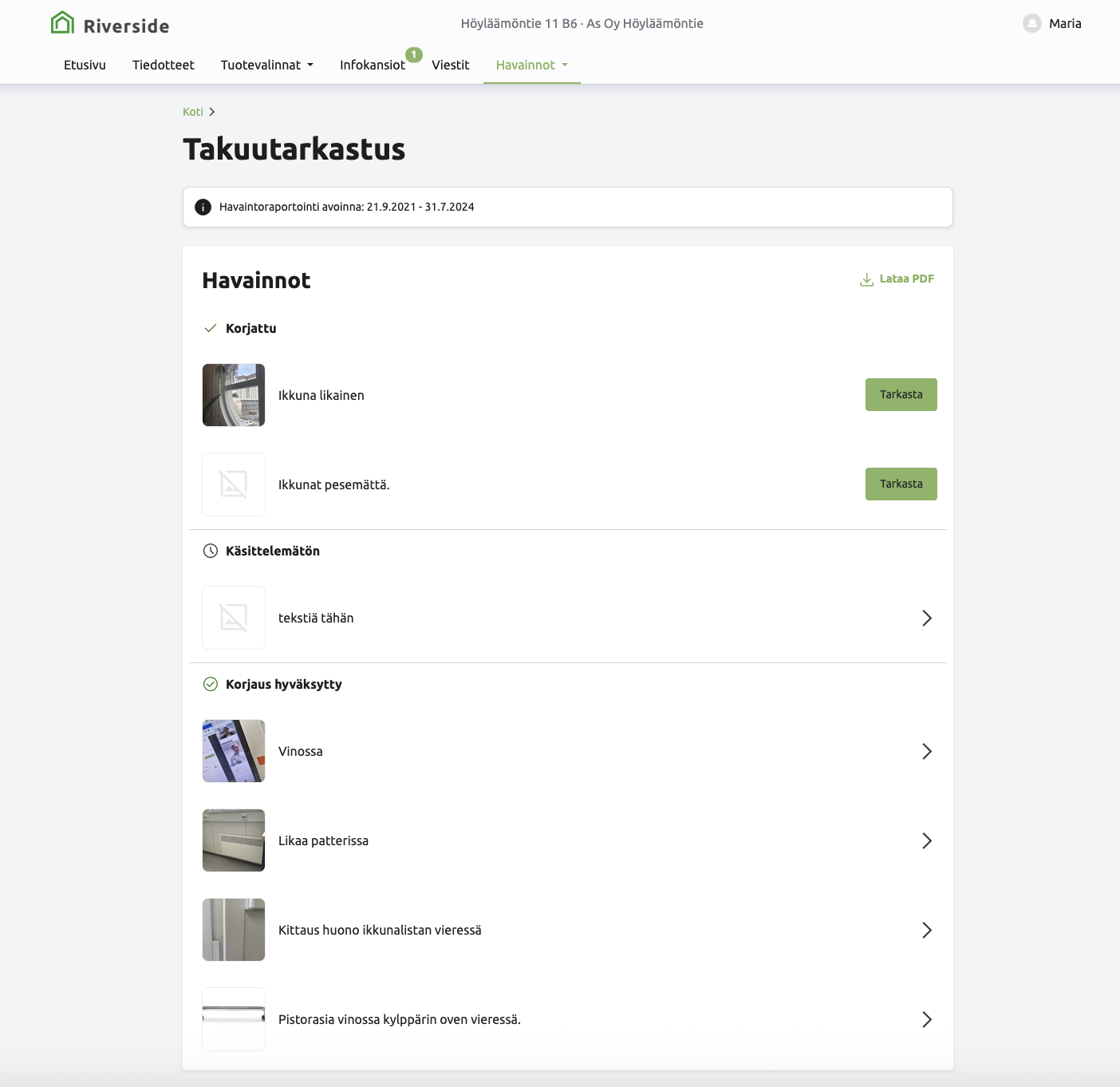 Havainnot-näkymä
